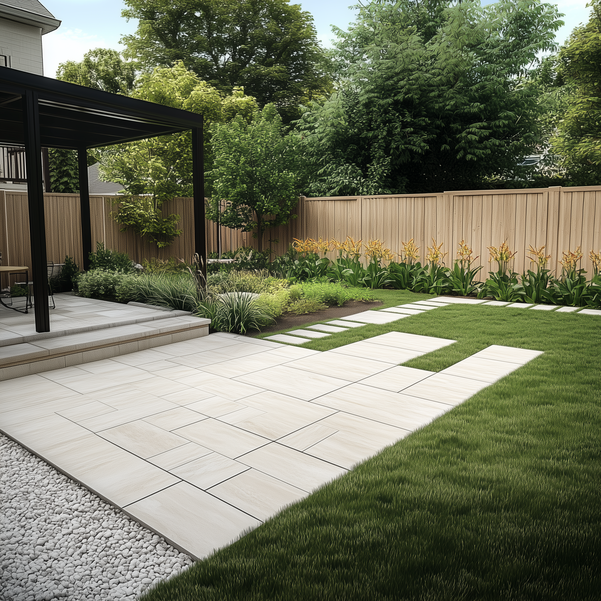✅ Includes: Basic hardscape elements like a walkway or patio,