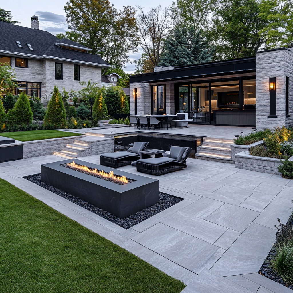 ✅ Materials: A mix of natural stone, high-end pavers, and decorative elements